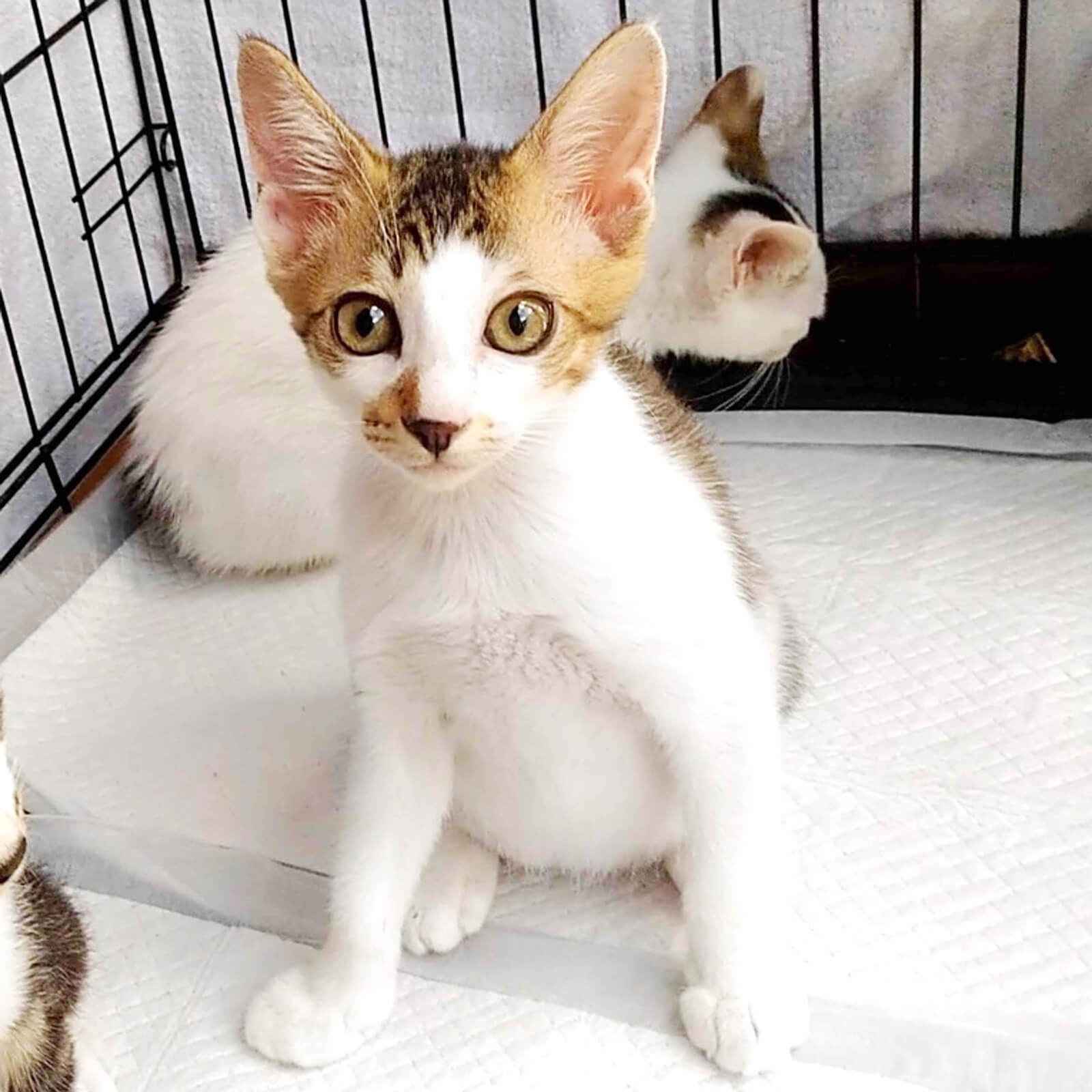 | ひとこと | ママ猫のチビタンちゃん(No.38)が早朝5時頃3匹の子猫を連れて来たので親子一緒に保護しました。 |