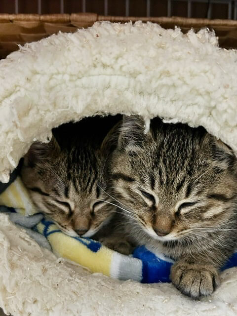 | ひとこと | 民家の古い小屋に兄妹でいました。隠れてしまいすぐに保護できず、毎日ご飯を持って通い捕獲器ではなく網で保護しました。 |