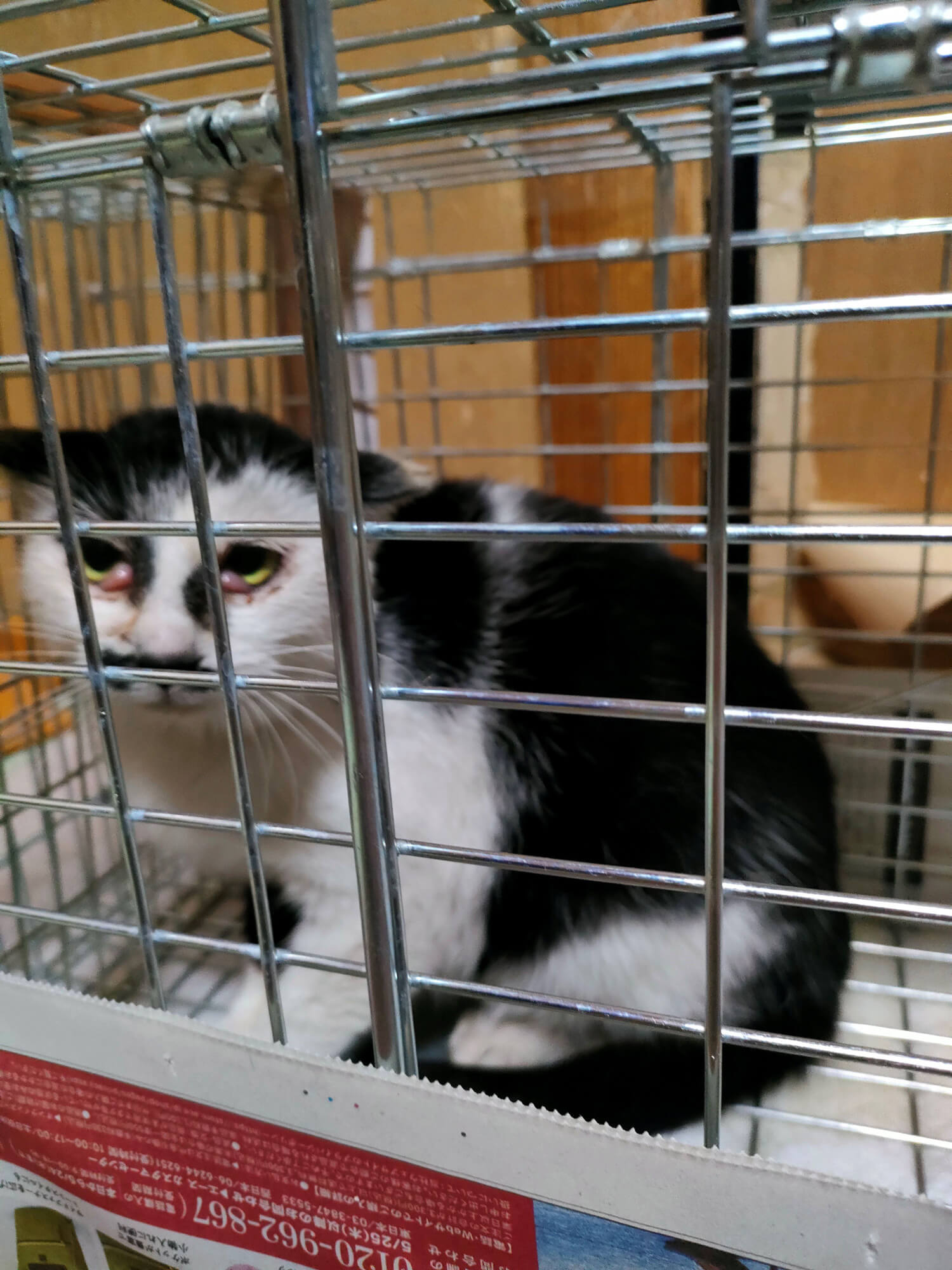 捕獲機にかかり、はじめはパニックで少し暴れましたが、捕獲機を布で覆うと大人しくなりました。そこからは特に暴れることもありませんでしたが、両目の瞬膜が出ており心配でした。手術当日に病院で先生に確認したところ、このままの状態でも健康上に問題はないとの説明でしたので安心しました。 |