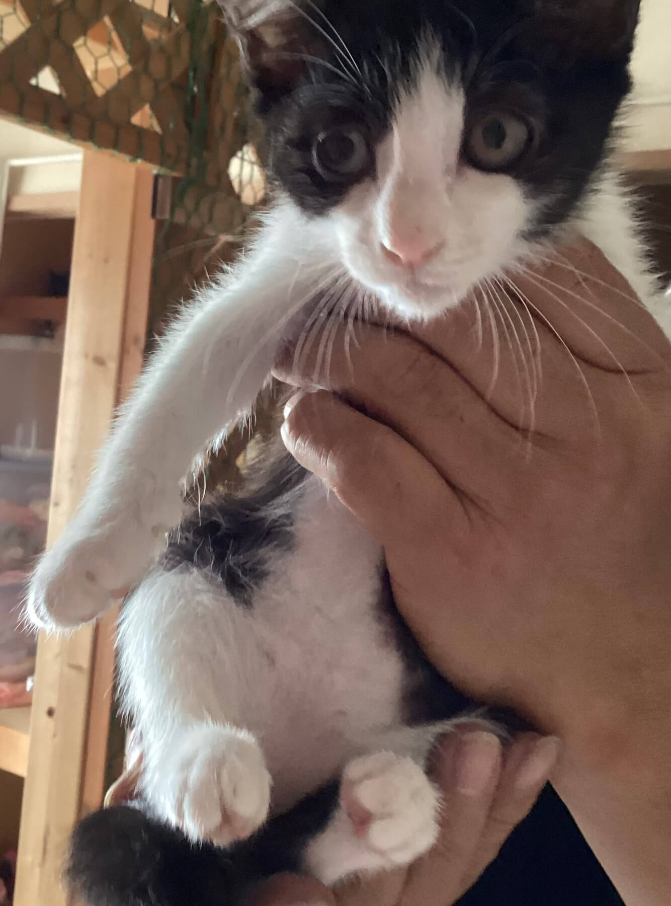 No.262のきょうだいです。7月2日小樽市多頭現場から6匹の兄弟姉妹を保護。猫風邪ひいており熱があり又目が真っ赤にて保護。治療をして快方に向かい12日ワクチンウイルス検査便検査駆虫等をしました。 |