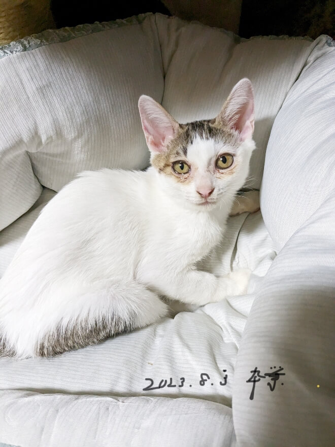 小樽市より7月2日に6匹の兄弟姉妹を保護した。この1人6匹全員が猫風邪と真っ赤なお目めをしており治療しておりました。 |