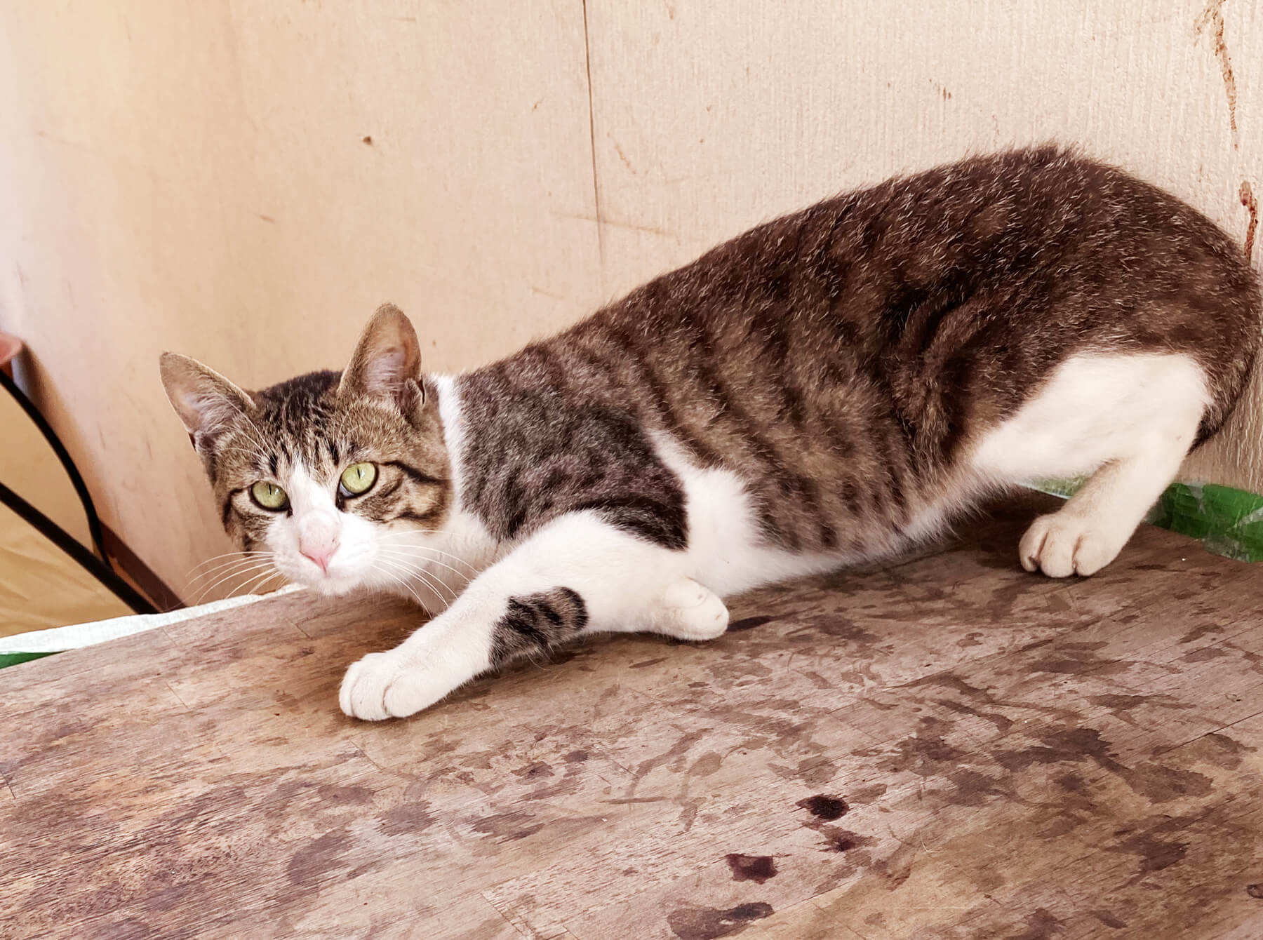 一年前から野良猫が子猫を連れてきてて、保護しようとしてましたが、なかなかできないで、やっと慣れてきて、触れるようになり、しっぽもケガしていたので、去勢と断尾をお願いしました、洗濯ネットに入れるのに3回目にやっと成功して病院へ、完治したら、外に離すつもりでしたが、とても慣れているので、里親募集したいと思います。 |