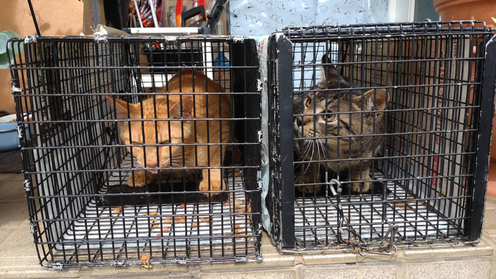 餌やりさんの元へご飯を食べに来ている子でしたので、そちらに捕獲器を設置し、トライして捕獲しました。 |