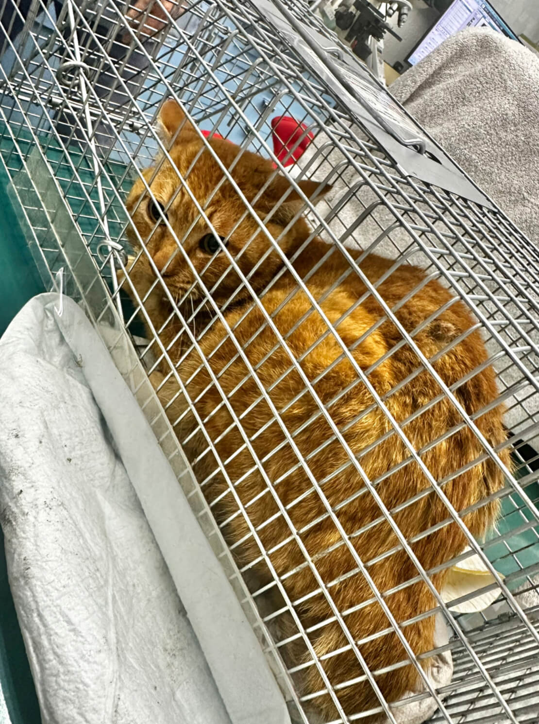 まだ若そうだけどお腹は空いていて数日通ってきたので捕獲機にもすんなり入ってくれました。去勢の時胸元の傷口があったのも処置しました。 |