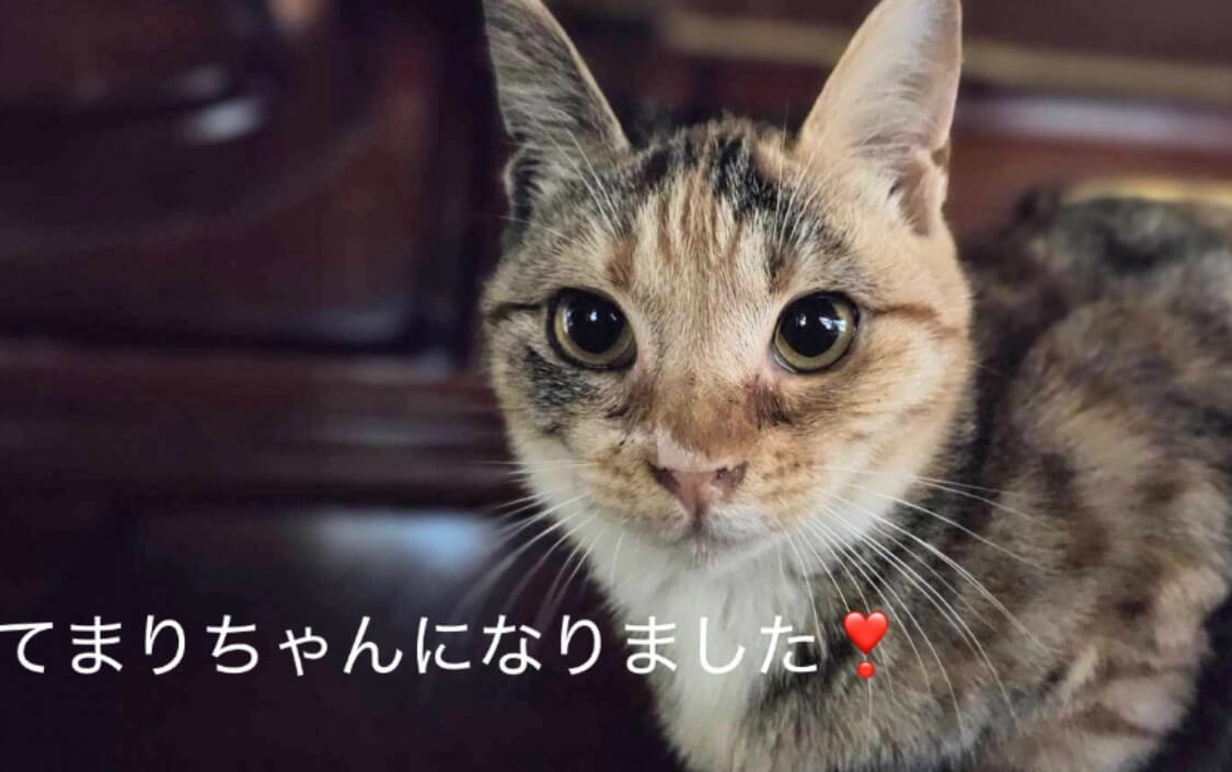 猫集団より風邪ひき猫を保護しました。そして、里親様に繋ぎました。このプロジェクトによって救われ里親様に家族として受け入れて頂きました。 |
