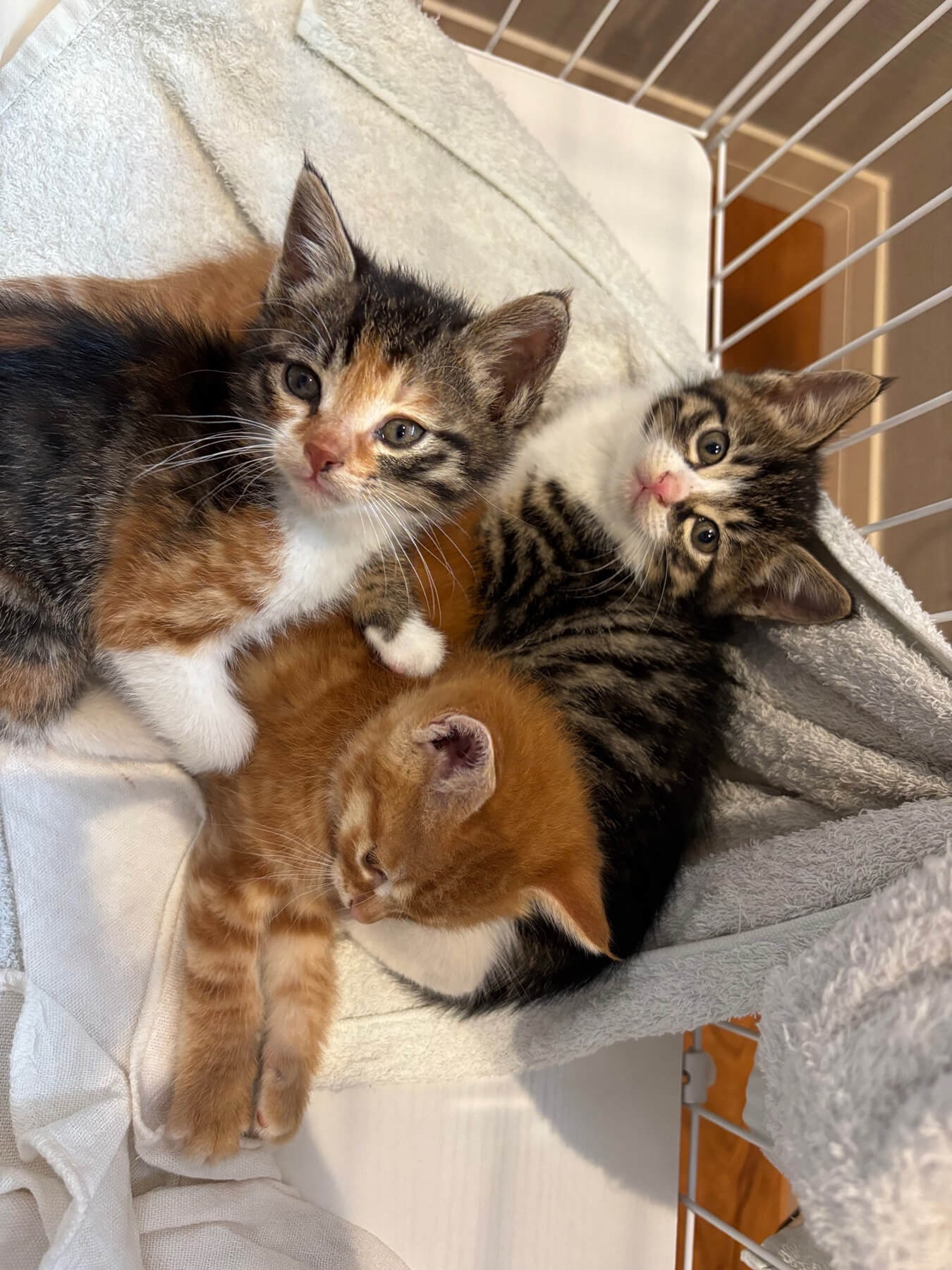 庭で子猫が三匹鳴いていました。簡単に捕獲できてしまい、そのまま保護することに。二匹をハナコプロジェクトのちびっこケアを利用させていただき、まずは一匹、里親さんに出しました。元気に大きくなぁれ! |