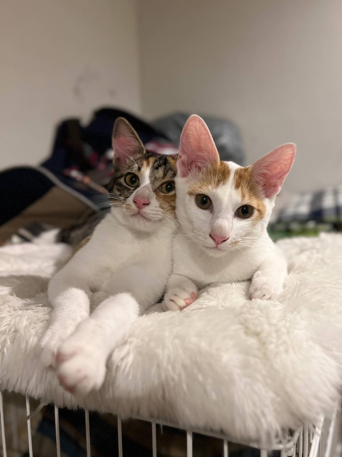 保護した母猫が出産した子たちです。母猫には耳カットがありましたが、なんと未手術でした。母猫が人馴れしていなかったので、ケージの中で出産から育児までよく頑張ってくれました。 |