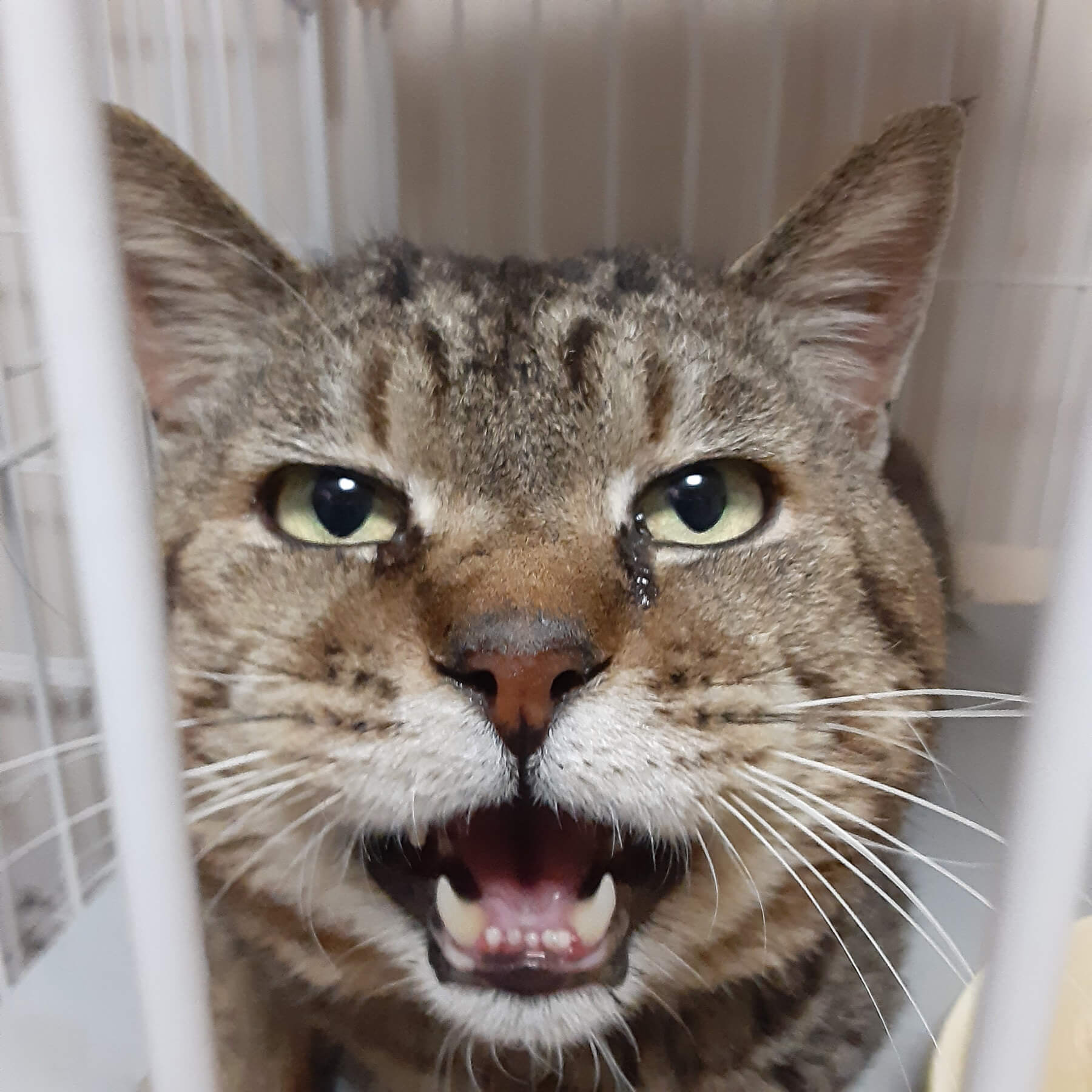 ボス猫の風貌ながら、捕獲器の中でシャーもいわずに落ち着いていました。 |
