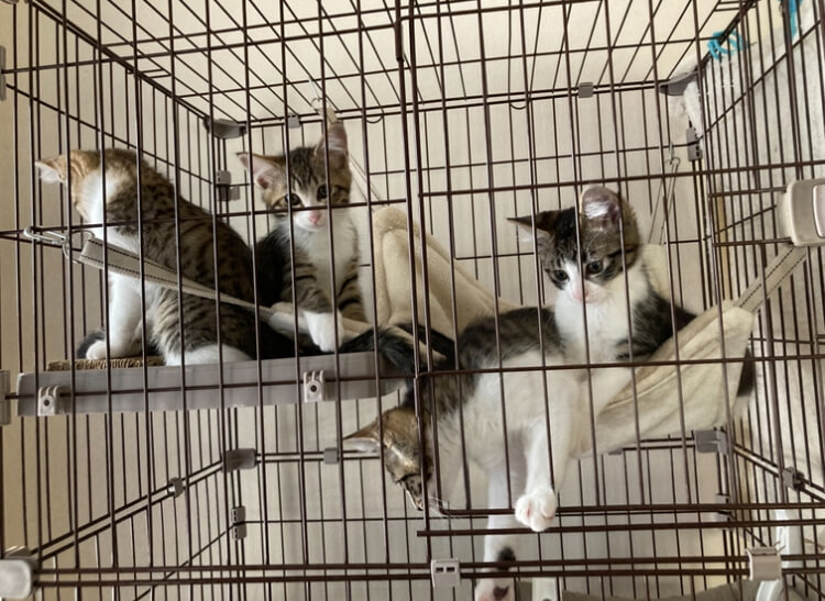 母猫を保護した二日後に子猫たちを探し出して保護しました。母猫が大事に育ていたようでみんな猫風邪も怪我もなく元気で安心しました、母子一緒に出来てお世話しています。母猫は不妊去勢手術セット、子猫たちはちびっ子ケアを利用させていただきました。 |