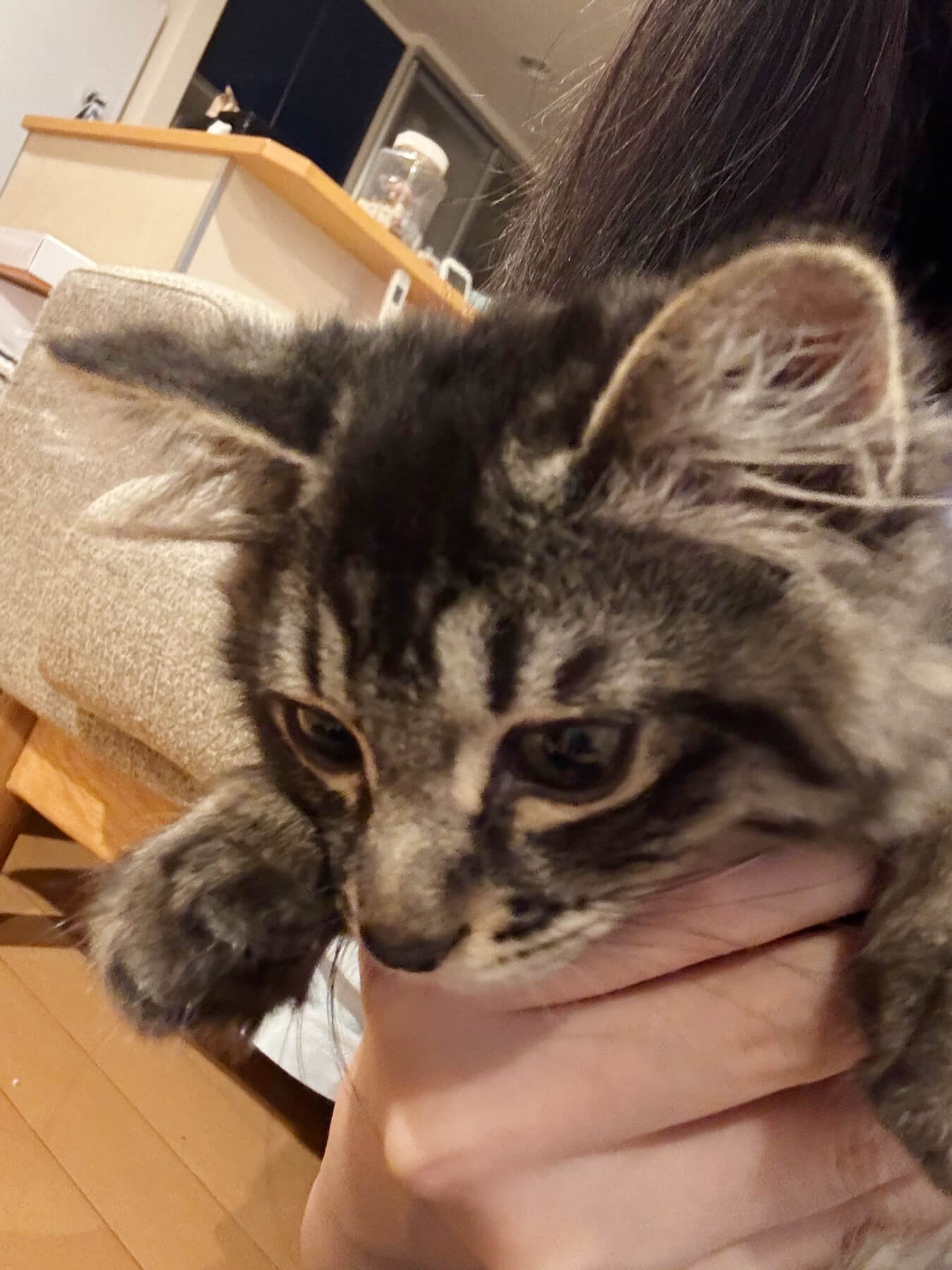 最初猫風邪をひいていて、目や鼻がぐちょぐちょでしたが、少しずつ元気になり手術をすることができ、正式譲渡になりました。良いご縁があり、安心できる方に里親さんになってもらうことができました。このプロジェクトがあったおかげで、無事次の子を保護することができます。ありがとうございます。 |